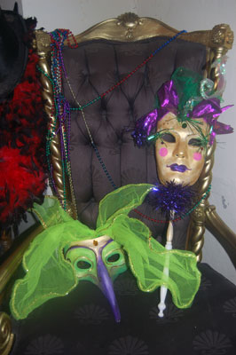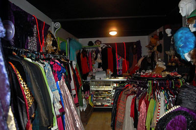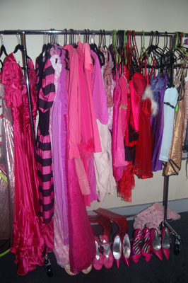 One of a kind dresses, hats, shoes, belts, wigs etc. . .